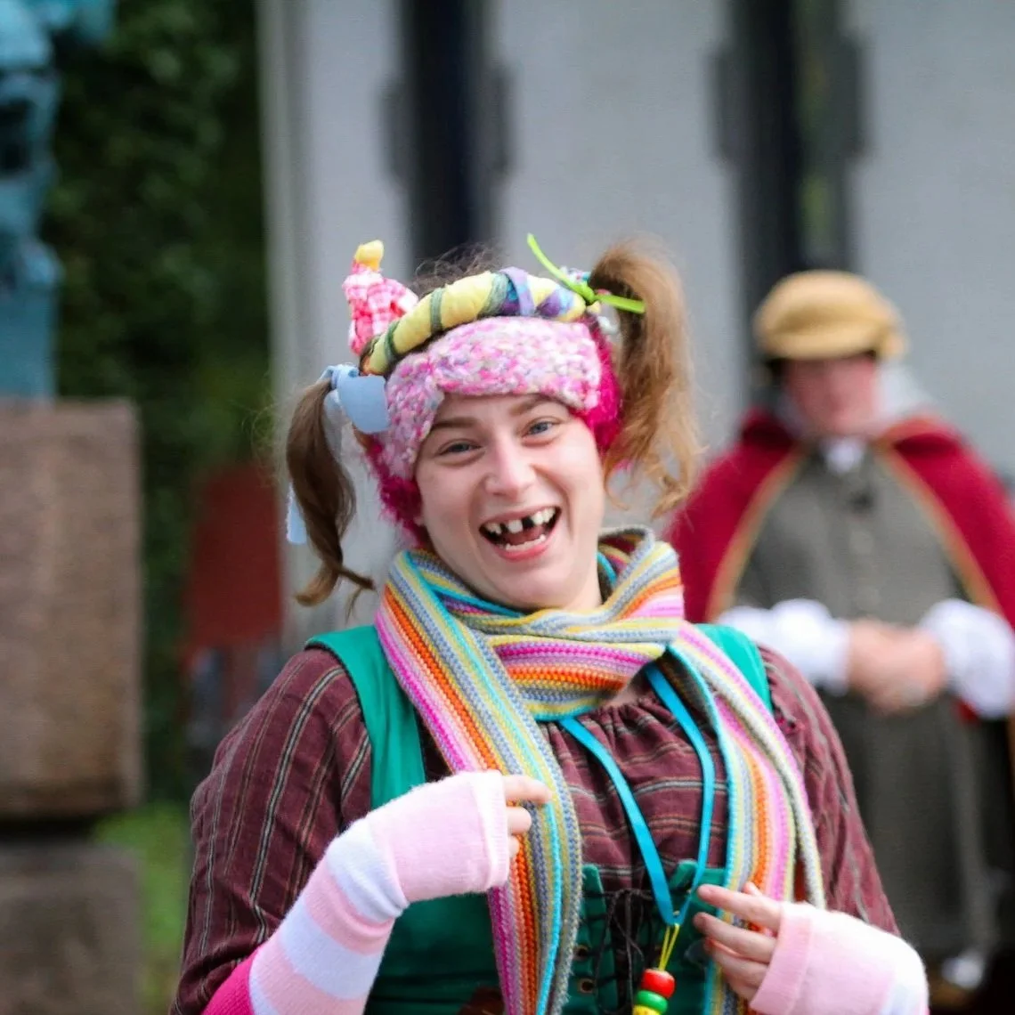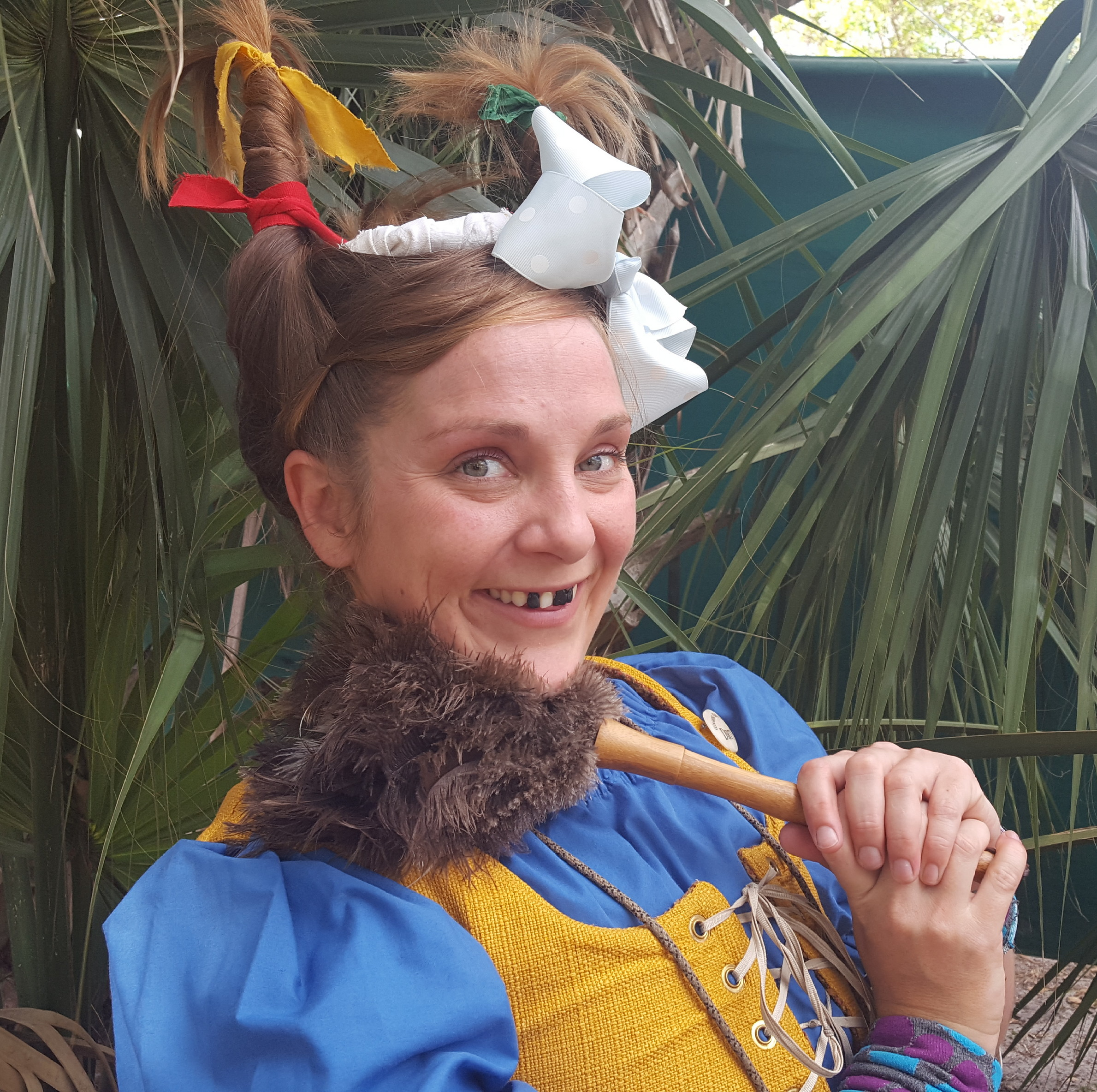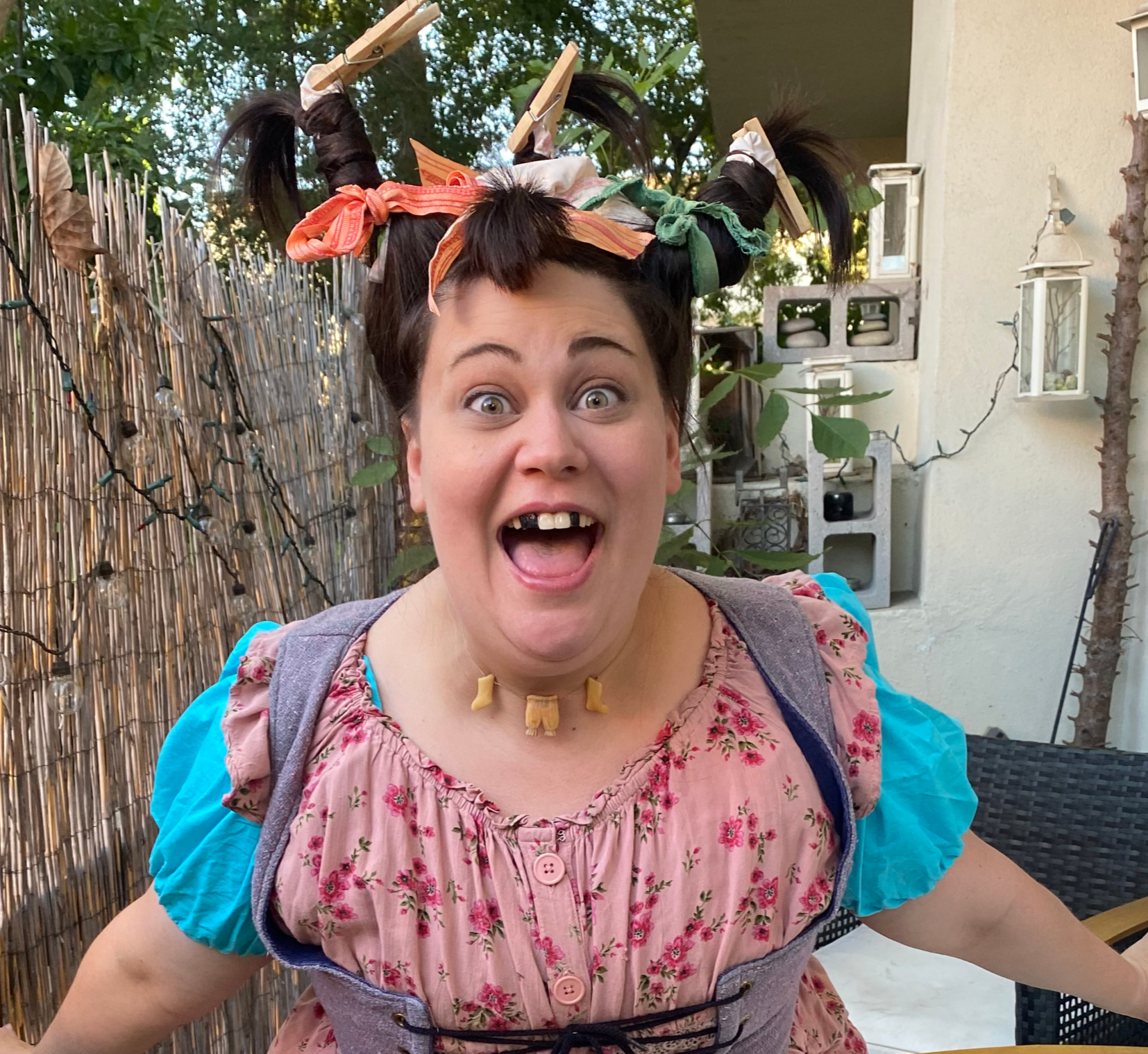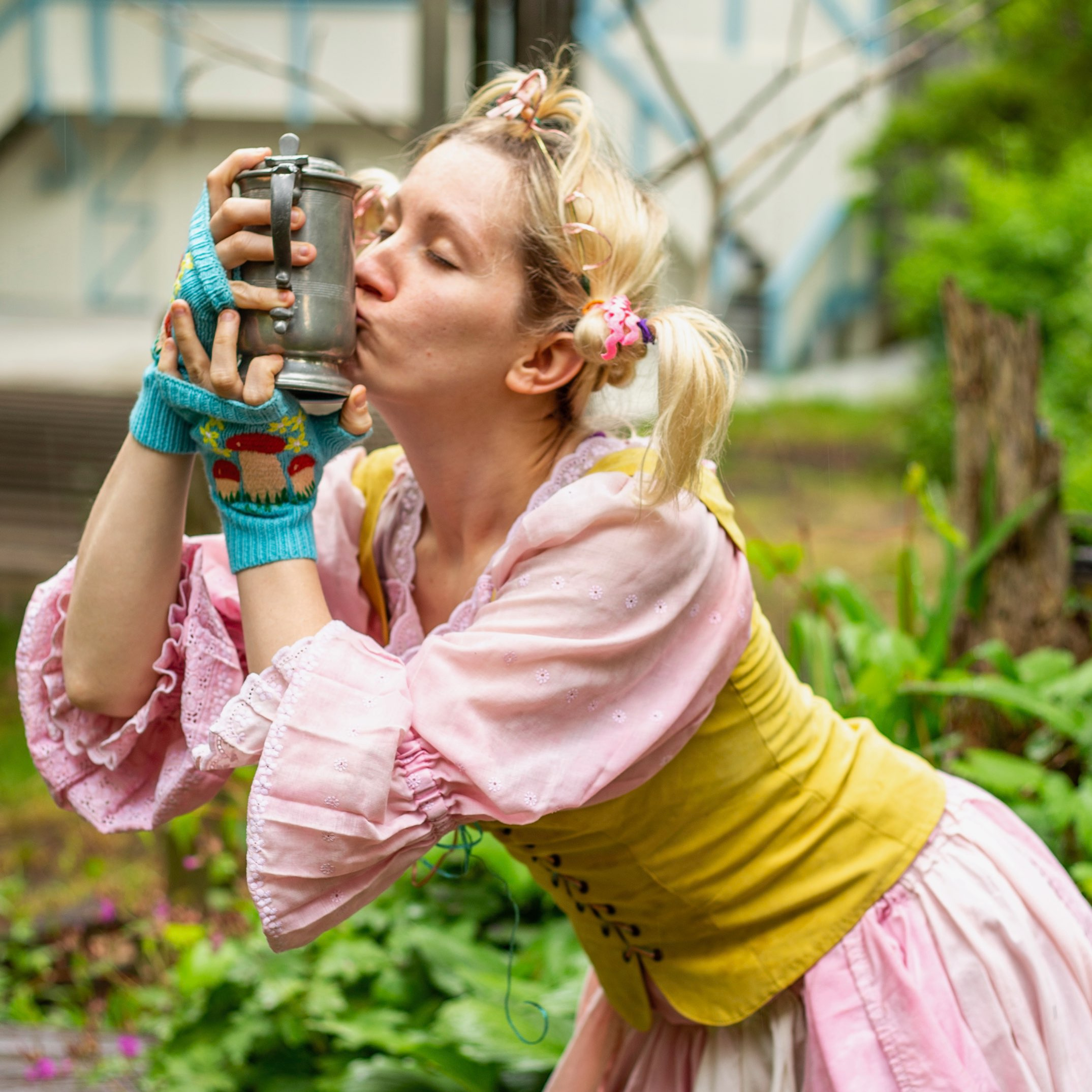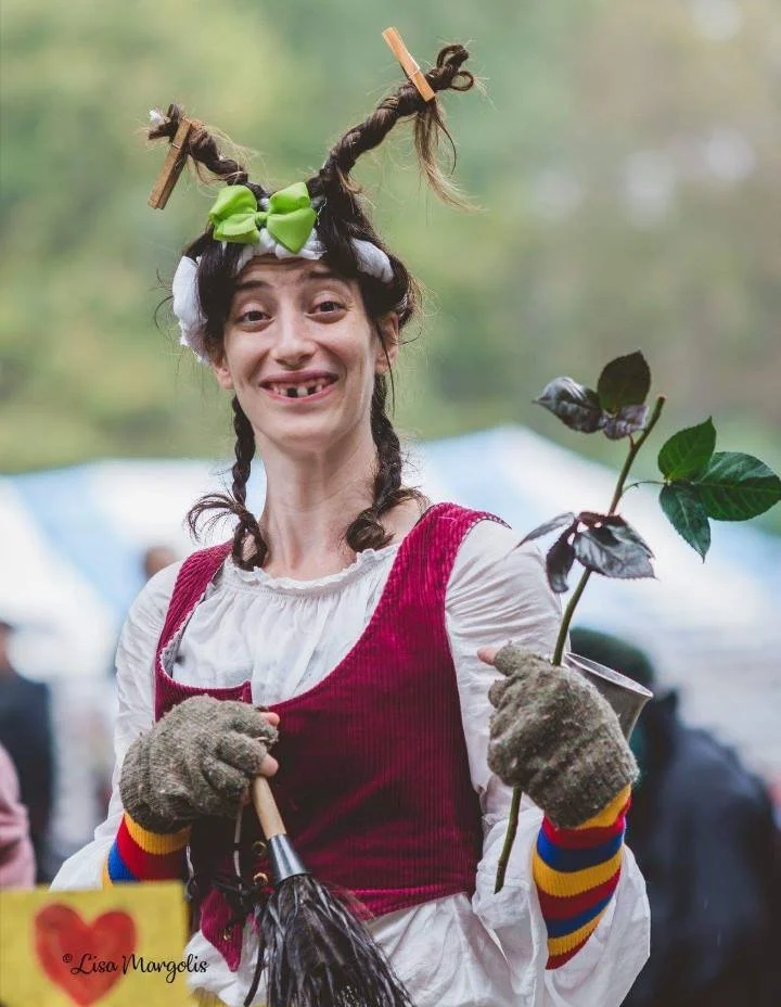 Petunia, our raven-haired, blue-eyed Angel Wench, never met a song she couldn’t sing or a kilt she couldn’t loop up. A fearsome actress on the boards of the Big City as well as our own dear mischief-maker, Petunia is up above washing laundry in heaven and pinching Saints’ cheeks. We miss you each day, our sweet girl, and we will never forget you.